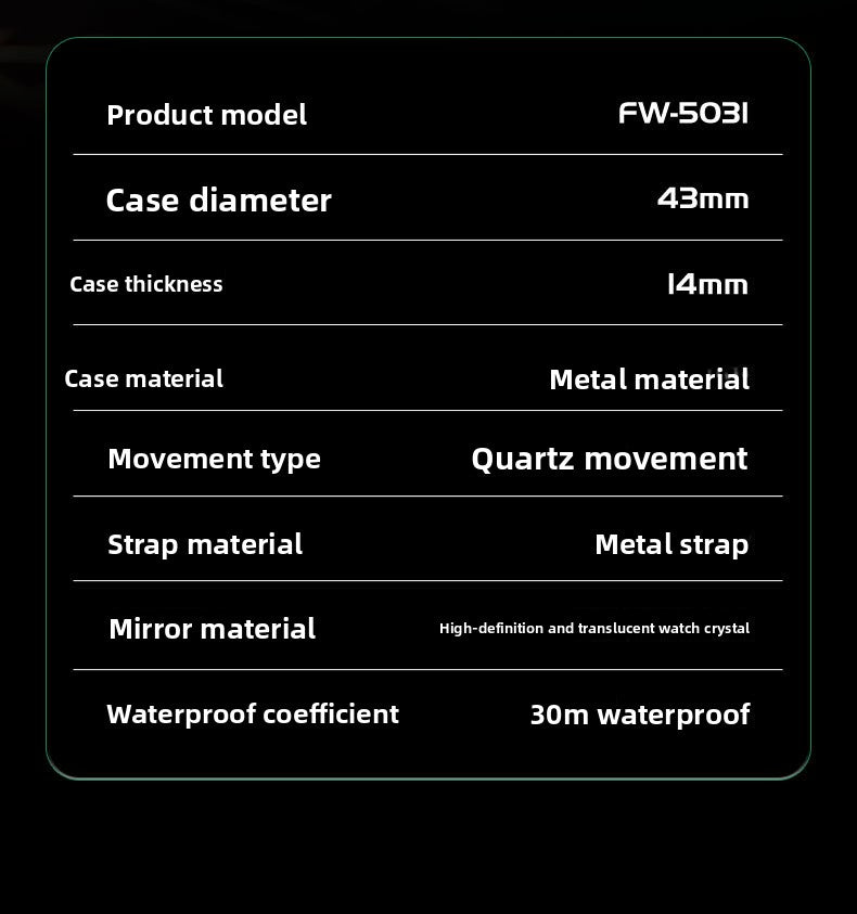 - Movement Type: Quartz